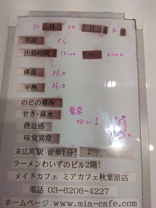 【公式】 秋葉原メイドカフェ ミアカフェ秋葉原店 🌸 メイドリフレ 撮影会 ミアリラ&フォト東京店@mia_group·👑本日12月20日(土)の総合案内👑 🎀ミアカフェ秋葉原店🎀 🍀本日12:00〜22:00オープン🍀 🎀ミアカフェ山梨店🎀 🍀本日18:00〜22:00オープン🍀 🎀ミアカフェ浜松店🎀 本日おやすみ→次回12/21(日) 🎀ミアカフェ静岡店🎀 🍀本日17:00〜21:00オープン🍀 #メイドカフェ3345