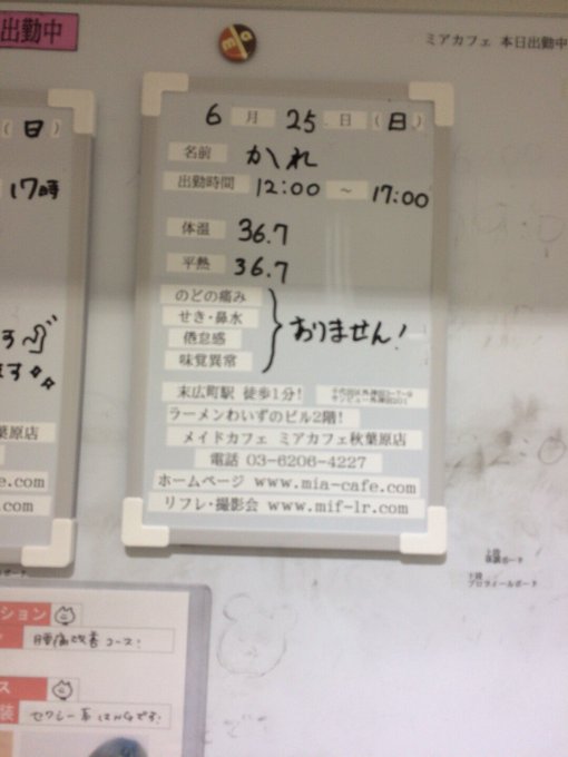 【公式】 秋葉原メイドカフェ ミアカフェ秋葉原店 🌸 メイドリフレ 撮影会 ミアリラ&フォト東京店@mia_group·本日6月25日(日)の営業情報 ☆*:.。.。. 🩷ミアカフェ秋葉原店🩷 オープンしました!!! 12:00〜17:00営業 まな、新人かれ 出勤! ☆*:.。.。. 🧡ミアリラ&フォト秋葉原店🧡 みれい 出勤 ご予約で満席です ☆*:.。.。. #メイドカフェ #メイドリフレ #撮影会1