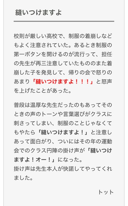 わむ📚🖋1/25 生誕&周年@wamu_kuroneco·4時間美容室でこれ読む✍️引用オモコロ@omocoro·6時間【11/20の特集】 【3】改めて、あなた方の内輪ネタ・身内ギャグを教えてください【3】(作:ナ月) https://omocoro.jp/kiji/543556/ みんなの「友人の間だけで流行っていたノリ」を教えてもらいました11694