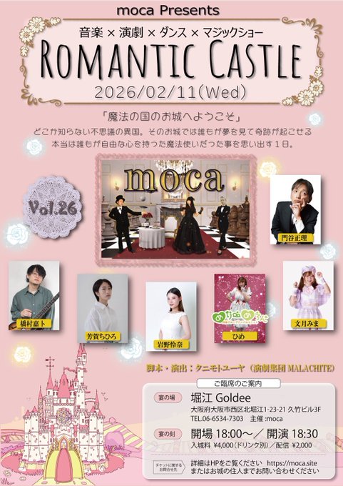 ひめ🦀❤️LIVE♡2/8.11 生誕祭♡2/28@hime_monoclub·【ライブ出演のお知らせ】 🏰2026年2月11日(祝・水) moca presents 「Romantic Castle vol.26」 📍堀江Goldee ⏰開場18:00 / 開演18:30 🎟4,000(D別) 「魔法の国のお城へようこそ」🪄 本当は誰もが、自由な心を持った魔法使いだったことを思い出す1日。 ご予約はDMにて💌117155