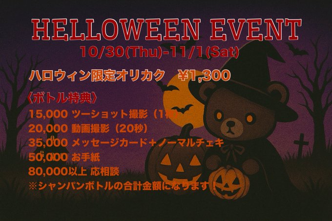 ひよ@hiiiii___yo·12時間ポリスとなにかきようかなの予定です、迷ってます、引用Bear's Party!@kumapa___·12時間🎃\\\***///🦇\\\***///🎃 👻ハロウィンイベント👻 ♡10/30(Thu)〜11/1(Sat) ♡べあちゃんが仮装姿で お待ちしております🧸 🎃\\\***///🦇\\\***///🎃 #メイドカフェ #コンカフェ #秋葉原 #求人 #クリスマスイベント3460