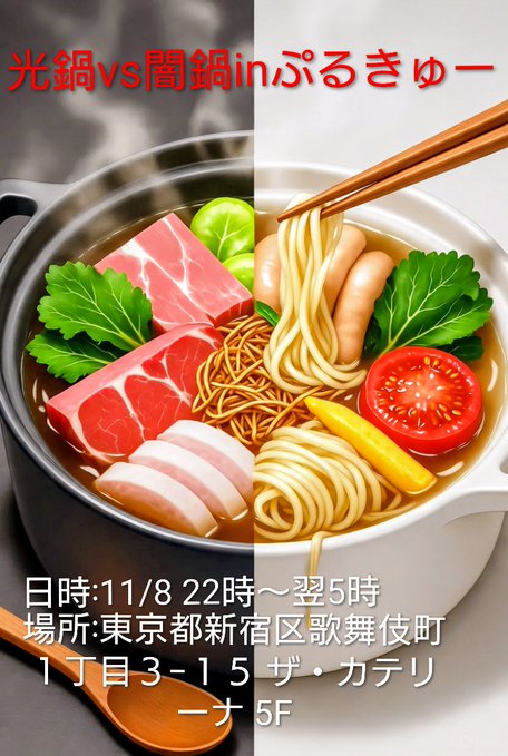 メイド&サブカル カフェバー ぷるきゅー@purukyu·42分本日もご来店ありがとうございました💓 明日11/8(土)は16時開店💞 あいる(@purukyu_airu)16-24 ちかにゃ(@purukyu_nya)1630-2345 つくね(@purukyu_tsukune)16-24 22:00以降は鍋会を開催します🍴 詳細は引用ポスト元をご参照下さい💓 ご来店、お待ちしています❣️引用つばさ_283 飼育の日、ご来店有難うございました!!@code_283_k·10月27日こ く ち 11/8に鍋会やりま! 今回のコンセプトは画像の通り(笑) システム等々決まり次第ツリーにします🙇 急遽な日程ではありますが…今回もみんなで楽しく食べて呑んで歌ってできたら幸✨ お時間等余裕がございましたら是非に!!11218