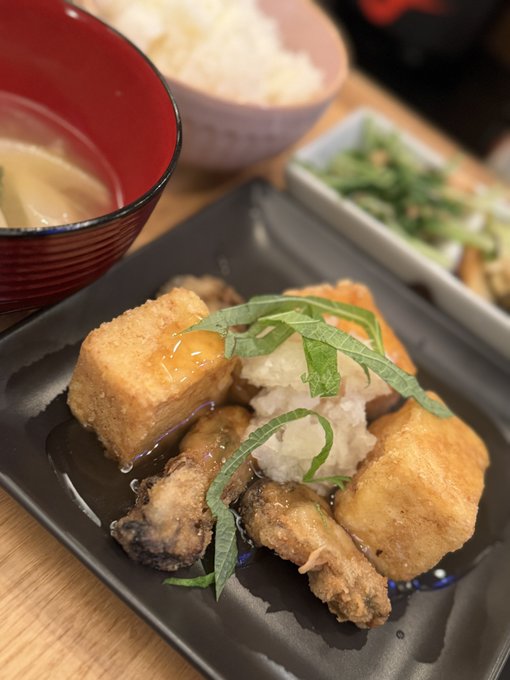 メイド&サブカル カフェバー ぷるきゅー@purukyu·本日の #つくね食堂 は あんかけ厚揚げ&牡蠣からあげ定食です!🦪📛14128