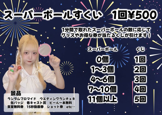 cafe&bar Reloadさんがリポスト桜田ゆゆ🍒@___yu__yu_·ログイン🌻今日は浴衣ー!! スーパーボールすくい大会本日からです🫡 くじの景品もいろいろあるのでゲットしてほしい🫶112333
