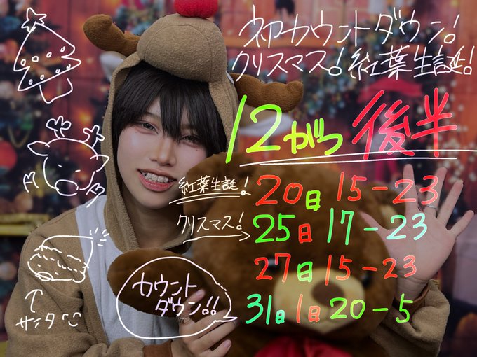固定お殿@クラパラ@KlePala_otono·12月後半‼️ おれのくせに4日間もいます、!! 紅葉生誕👾🎮 クリスマス🎅🎄 カウントダウン⛩🌅 盛りだくさんすぎるー!!! おれとクリスマス過ごして、年越しもしよ?12333