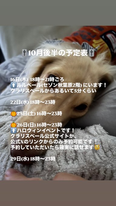 固定まいな🐾@maina_veil·10月後半の予定表ʕ•̫͡•ིʔྀ めっちゃ文字多いww ハロウィン楽しみ❕ 会えますように⟡.·21513
