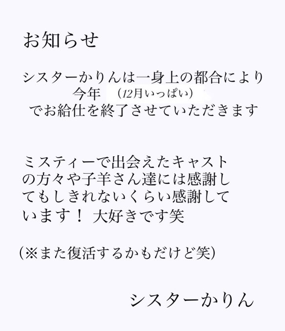 ゆきの🐧@yukino_veil·13時間⚠️明日から3日間、普段と違うお店にいます!! 会いに来てくれた方みんなとちゃんとお話して楽しみたいので、DMとかで来館時間教えてくれたらありがたいです🫶🏻あと単純に誰来るか分かったら嬉しいし🎶 ・21日(金)ミスティー⚗️18:00~ ・22日(土)ルル🪽16:00~ ・23日(日)ミスティー⚗️17:00~引用ゆきの🐧@yukino_veil·11月12日返信先: @yukino_veilさん【11月後半お給仕予定】 ⛪️…クラリスベール(橋爪ビル3階) 🪽…ルルベール(セゾン秋葉原2階) ⚗️…ミスティーベール(セゾン秋葉原3階) 22日→ルルベールで₹˝ャʓイベント🪽 ⚠️3つの教会を行き来するのでお間違いのないように〜‼️ (おやすみの日…17,20,25,26,29)219938