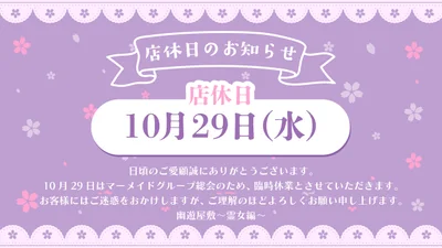 10月28日 17:34 / 出勤 10/29は店休日です👻💤
