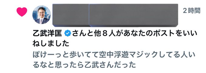 もし💭さんがリポスト♡すごくのめるちぇりぴさん🍒♡@reijo_cheri·10時間あつい引用♡すごくのめるちぇりぴさん🍒♡@reijo_cheri·16時間ぽけーっと歩いてて空中浮遊マジックしてる人いるなと思ったら乙武さんだった116626