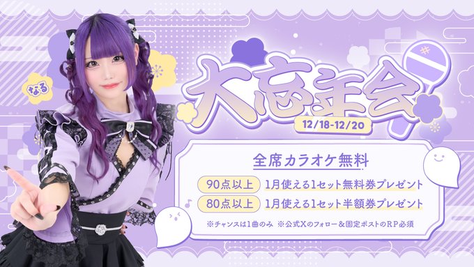 【秋葉原コンカフェ】幽遊屋敷〜霊女編〜(16:00〜25:00)@uuyashiki_girl·6時間⛩️幽遊屋敷〜霊女編〜⛩️ 霊女大忘年会🎤 カラオケで高得点取ると お得な割引券プレゼント🎁🉐🉐 いなりちゃん🩵@reijo_inari りりこちゃん🩷@reijo_ririko #コンカフェ #秋葉原 #カラオケ引用【秋葉原コンカフェ】幽遊屋敷〜霊女編〜(16:00〜25:00)@uuyashiki_girl·12月17日୨୧‧⁺̣˚̣̣*̣̩⋆̩·̩̩୨˚̣̣̣̣୧·̩̩⋆̩*̣̩˚̣̣⁺̣‧୨୧ 大忘年会 ୨୧‧⁺̣˚̣̣*̣̩⋆̩·̩̩୨˚̣̣̣̣୧·̩̩⋆̩*̣̩˚̣̣⁺̣‧୨୧ 12/18~12/20 全席カラオケ無料 ~90点以上~ 1月使える1セット無料券プレゼント🎁 ~80点以上~ 1月使える1セット半額券プレゼント🎁 ※チャンスは1曲のみ!詳細はバナーを👇186