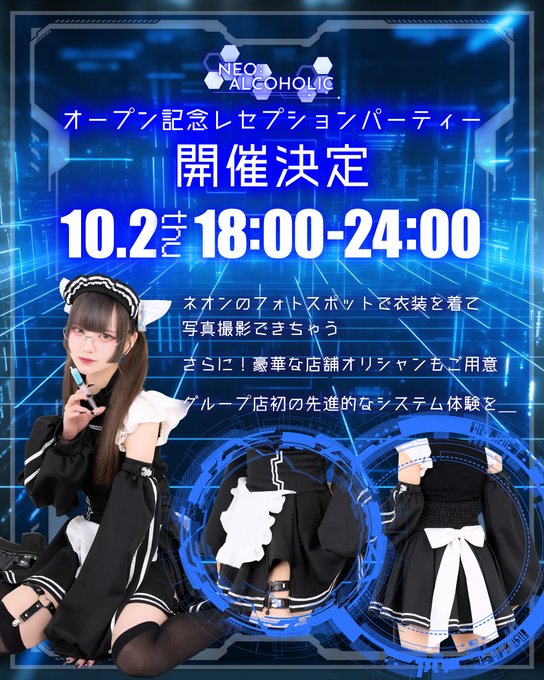 ひたち🦋さんがリポストNEO:ALCOHOLIC🧬コンカフェ新店舗@NEO_ALCOHOLIC·•*¨*・.¸¸☆*・゚・*¨*・.¸¸ レセプションのご案内 2025.10.2 レセプションパーティ開催🌟 ネオンのフォトスポットで 衣装を着て写真が撮れちゃいます📸✨ 🧬高度テクノロジー×医療🩻の世界を体験_ •*¨*・.¸¸☆*・゚・*¨*・.¸¸ #コンカフェ #新店舗 #レセプション #NEOALCOHOLIC13291,829