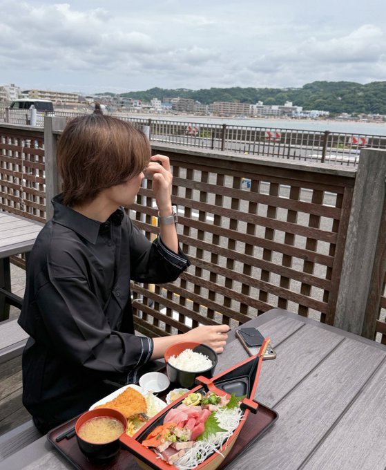 うみと 【幽遊屋敷】🌊🌊@yuyu_umito·鎌倉で海鮮食べた!潮風で髪の毛パッサパサ #鎌倉 #自撮り #メンコン10828