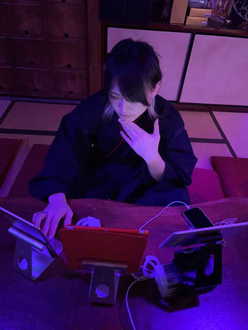 木兎(ミミズク)🦉@yuyu_mimizuku·1時間眠気を飛ばすマルチタスクwww 3画面同時です。 @yuyu_teru 挑戦状です。引用ツイート幽遊屋敷∞メンズコンカフェ@uuyashiki_akiba·1時間マルチタスクみみずく🦉 #秋葉原 #コンカフェ #メンコン #配信者17