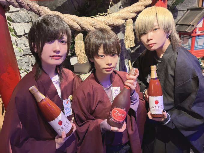 あまなつ🧸🪡幽遊屋敷@yuyu_amanatu·2時間いちご!!!ノンアルインアルどっちも美味しそうすぎる…これは飲みたい…( ᐢ˙꒳˙ᐢ )引用ツイート幽遊屋敷👻男装コンカフェ@uuyashiki_danso·2時間幽霊君追加浮遊➰👻 なんとなんと❣️ 限定ボトルの登場です🍾 うさまる君が持っているのは 苺のスパークリングワイン🍷 ばぐ君とわく君が持っているのは あまおうの果実100%の濃厚ジュース🍓 ボトル1本あたり40個のあまおうを使っているそう👀贅沢〜! #男装カフェ #コンカフェ #秋葉原 #初回3
