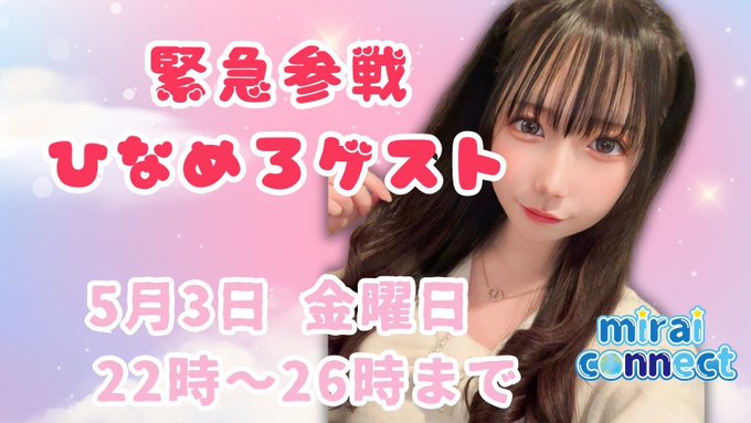Mirai Connect 🌏 福岡天神@ConnectMirai·緊急ゲスト‼️告知‼️ ひなめろちゃんです✨ 3日⭐️22-26時⭐️ でお待ちしてます♪4
