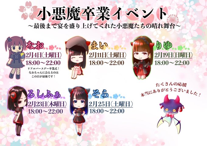 小悪魔居酒屋😈LittleBSD🥀3月5日グランドフィナーレ🍷さんがリツイートしましたりゆ✡2/19(日)卒業✡@liyu_inverse·14年居ましたが…遂に卒業なんて日がきましたね🥺 当日は昔のBらしくコスプレです✨ りゆちゃんはあの16万の衣装!!! メンバーはいつメンのまいそらるしふぁ🤗 そしてあたしのイベントと言ったらのあーにゃ😆 更に同期のめるちゃんが来ます❣️ 同期に最後を見届けてもらえるなんて最高やね…🥹9