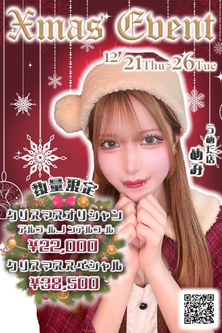 ゆいなちゃん(20)12/23生誕卒業@yuina_realize·ろぐあうと!たくさんお祝いありがとうございます🥹🥹明日もクリスマスイベントで18.5-23でいます!💞1
