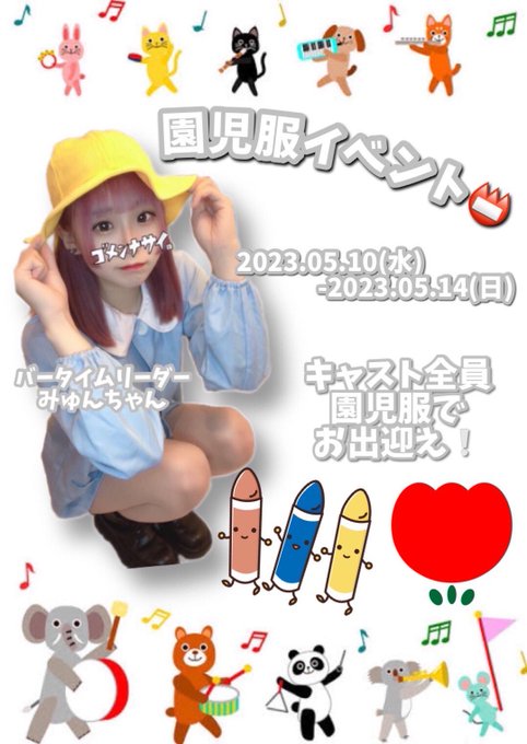 なぴ🦋@眠レア@napi_realize·18分今日いる!!! 人生初園児服かもしれない📛👧 頑張るかも⍥❕引用ツイート【ミナミ】眠らない遊園地レアリゼ🎠コンカフェ🍿@realize_osaka·1時間2023年5月12日(金)🎪18:00-6:00 18-23 きり@kiri_realize なお@nao_realize ほしの@hoshino_shino__ 20-6 のあ@realize_noa 23-6 あいか@rea_aika なぴ@napi_realize ろん@realize_ronron 遠隔はこちら⤵️ http://realizeosaka.base.shop #コンカフェ #大阪コンカフェ