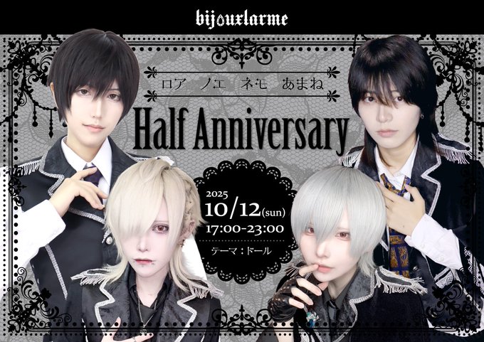 リウ@ビジュラム大阪本店さんがリポストビジュラム大阪本店┃日本橋💎男装コンカフェ@bjlm_osaka·‧✧̣̥̇‧✦‧✧̣̥̇‧ Half Anniversary ‧✧̣̥̇‧✦‧✧̣̥̇‧ ロア、あまね、ノエ、ネモ ハーフアニバーサリーイベントが開催決定🪦💉 テーマはドール🥀 是非お越しくださいませ໒꒱· ゚ 開催日時:2025/10/12 17:00-23:00 ⬇️詳細はこちら🍬📛 http://bijouxlarme.com/2025/09/14/hal…16425