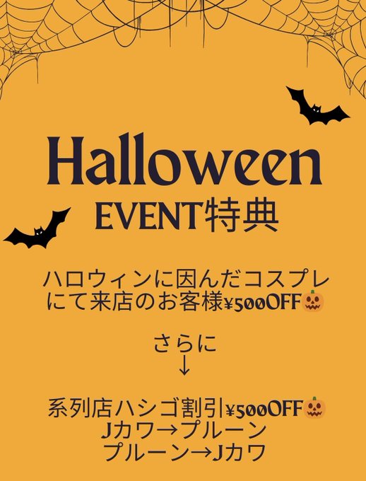 うかちん@uka_jpnzN·2時間画像に存在してる⊂( ᴖ ̫ᴖ)⊃ みんなのおもろコスプレ見たいんで期待してますヨ⁉️いや強制じゃないけど、ね⁉️⁉️‼️⌒ ͜ ⌒引用じゃぱにーずKAWAii(公式)@JPNZKAWAiiN·10月19日10/30(木) 10/31(金) 11/1(土) 🎃ハロウィンイベント開催🎃 👻ハロウィンに因んだコスプレ で来店のお客様¥500📴 ※キャストによる審査あり 👻系列店へはしご¥500📴 ※当日のスタンプカード押印確認 皆様のご来店ご参加を お待ちしております💗 POP by うか・ねむり1147