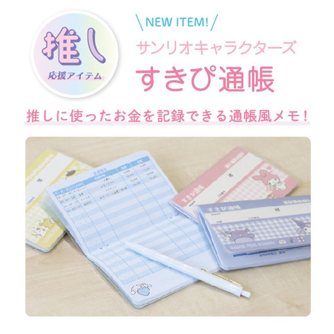普通に貯金用にほしい!!! 『サンリオ すきぴ通帳』 推しに使ったお金を記録できる通帳風メモ! 本物の通帳みたいな透明のスリーブケースに入っています。 ケースには推しの写真やレシートなどが入れられます✨ https://goodslog.info/30259/ 🗓9月発売