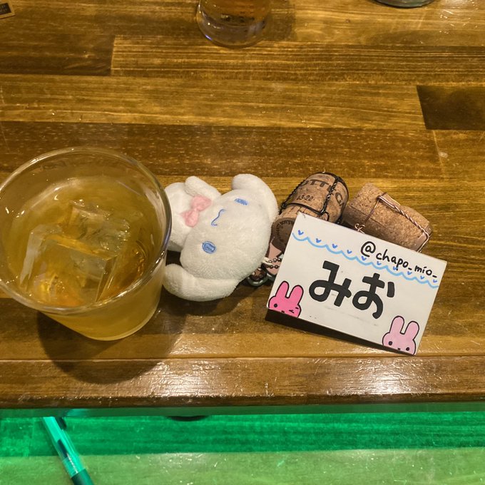 おきゅおわです🫠🫠 次回は明日🍎20-25時🍎にお会いしましょう!! 本日も指名、差し入れ、ドリンクありがとうございました🥰 前回ポンしてもらったアスティのコルク妖精さんにいただいたので名札につけた📛