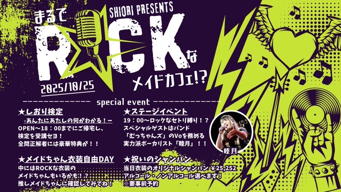メイドカフェQT@QT_98_·ひかるログイン🌟 本日しおりちゃん生誕祭🎂🎂🎂 パンクでロックなメイドさん(?)たちがお待ちしてます🎶 ステージも19時から‼️‼️‼️‼️ #メイドカフェQTひかる🌟11/3で4周年‼️318801