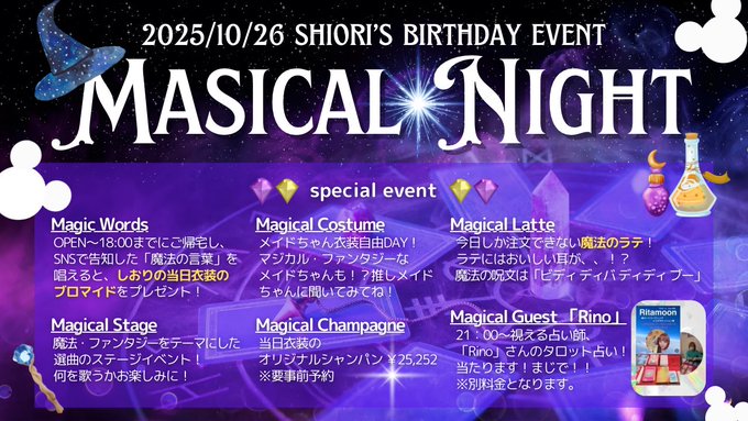 メイドカフェQT@QT_98_·🐶 ゆぺろぐいん 済🐾 今日はしおりちゃんのお誕生日ーっ❕ イベント2日目です!!!!🧶🐈 みんなマジカルな衣装🪄︎︎✨でお待ちしておりますよ〜🐶⭐️ しおりちゃん❗️❗️❗️❗️❗️❗️❗️❗️❗️ お誕生日おめでとうございまーす❗️❗️ みんなー❗️ゆ とお祝いするぞー❗️❗️ 今日は猫の日じゃないが、猫です✋🏻さらに表示🐶ゆぺ公👒生誕11/29.30114188