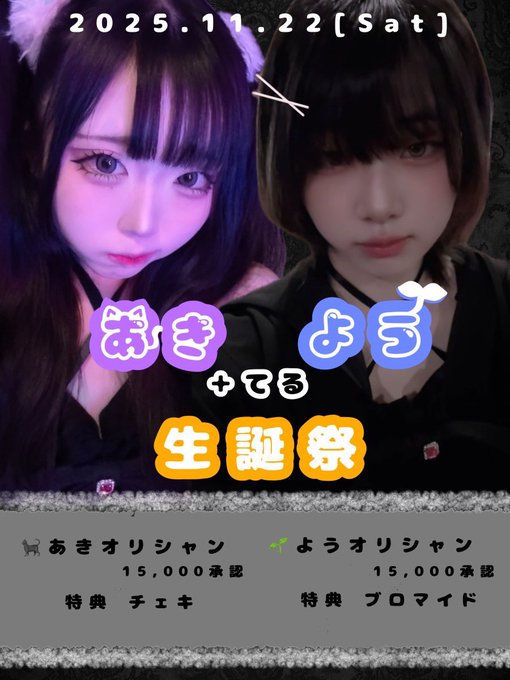 あき🐈⬛🖤みざりーさんがリポスト秋葉原コンカフェ【みざりー】キャスト募集中❕@misery_akiba·✨🎂🖤11/22(土) よう・あき・てる生誕祭🖤🎂✨ 3人の合同生誕祭です❕❕❕ おめでとうでいっぱいな日にしましょう⭐️ オリシャン、特典もあります⸝⸝• ̫•⸝⸝♡ 💖皆様のご来訪心よりお待ちしております💖Content warning: Sensitive contentThe author labeled this post as containing sensitive content.表示415432