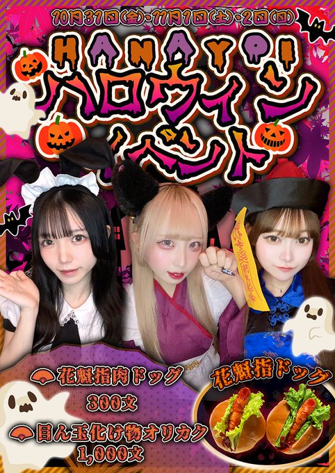 花宵-HANAYOI-🌸札幌コンカフェ@HANAYOI_8741·■本日11/1(土) 20時開店でありんす🌸 『ハロウィンイベント🎃』 開催です🍭 《出勤予定の花魁》 🌸83 @HANAYOI_83 🌸さくら @HANAYOI_SAKURA 🔰こご 🌸なぎさ @HANAYOI_nagi 🌸ゆの @HANAYOI_YUNO 🔰つきの 🌸くるみ @HANAYOI_KURUMI 🌸ひま @HANAYOI_HIMA 🌸まどかさらに表示23218