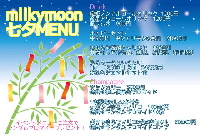 milkymoon🥛🌙@milkymoon_osaka·七夕イベント1日目! もなか、さらら、しゅく、ちょこ、きら https://milkymoon.theshop.jp13619