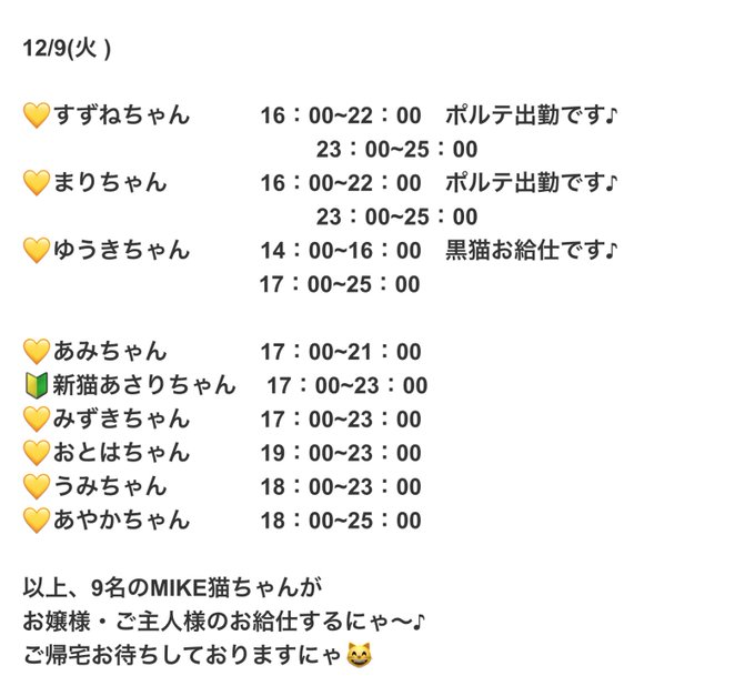 MIKECAFE(ミケカフェ)@MIKE_NOMINE·本日も元気よくお給仕するにゃ!🐱 ご帰宅お待ちしてますにゃ🎵9354