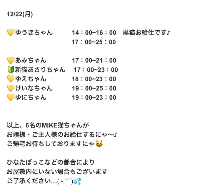 MIKECAFE(ミケカフェ)@MIKE_NOMINE·本日も15時から多くのご主人様、お嬢様のご帰宅お待ちしてますにゃ😽 今年もあと10日〜!4173