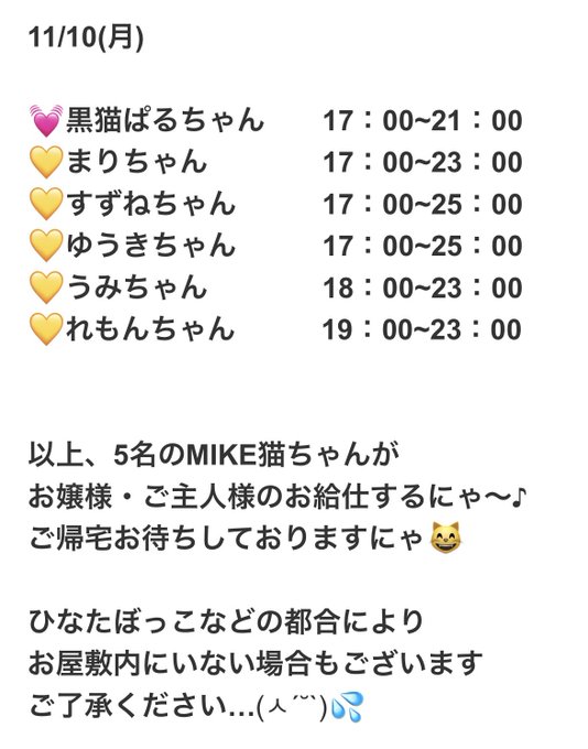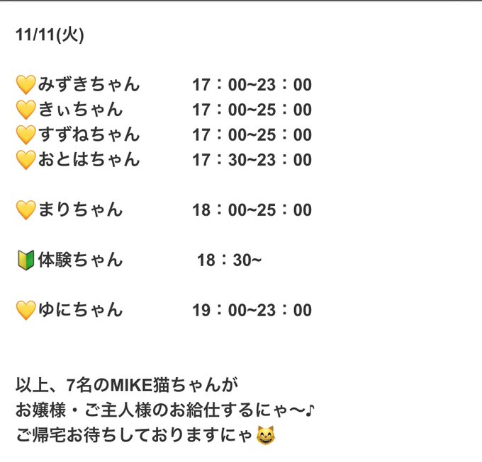 MIKECAFE(ミケカフェ)@MIKE_NOMINE·本日も17時から多くのご主人様、お嬢様のご帰宅お待ちしてますにゃ🐱18450