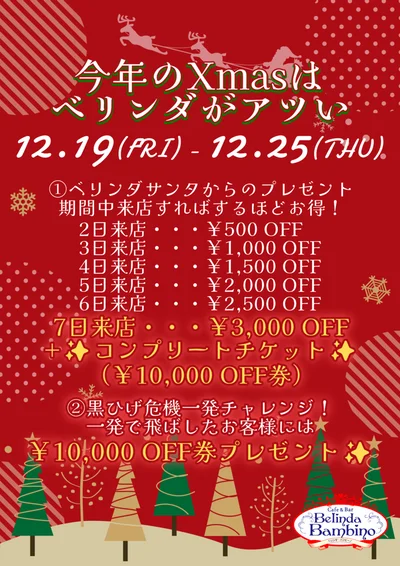 Xmasイベントはまだまだやっているのでぜひ女の子のサンタコスみにきてあげてくださいね‼