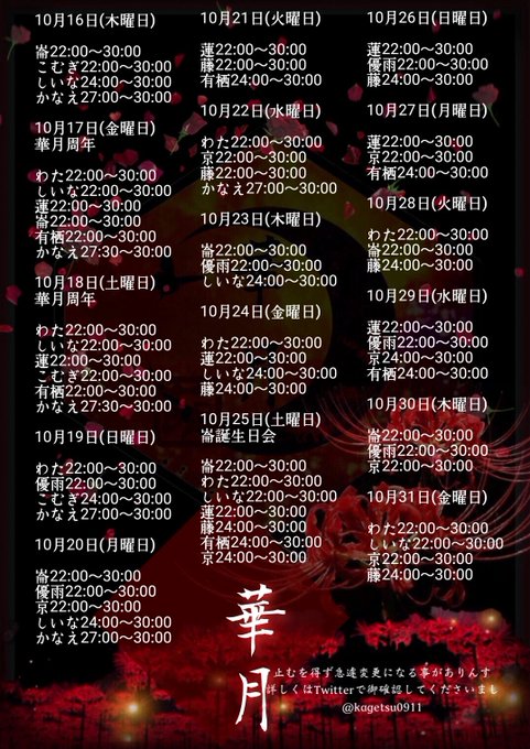 ◆華月◆2018.10.17開宴!さんがリポスト優雨@kagetsu_yuu·本日6時までいます🌸13108