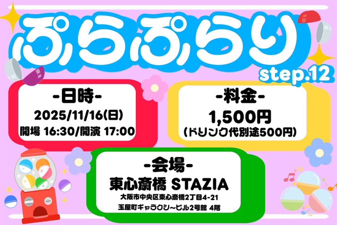 白兎火ユキ【プラリオン】@yuki_shiratobi·11月12日つ、ついに❣️(`・^・´)たのしみすぎるーーー👺👺みんな遊びに来てねー!o̴̶̷̤ ̫ o̴̶̷̤引用プラリオン@pralion_idol·11月12日【💖ぷらぷらり情報💖】 11月16日(日)東心斎橋STAZIAにて 定期イベント『ぷらぷらりstep12』 を開催致します💊 今回は、、!!!!! あるものを初公開!!! また後日お知らせします✨ お楽しみに🥰🥰 ご予約はこちら💁🏻♀️ https://ssl.form-mailer.jp/fms/a323eb5e579360…1214589