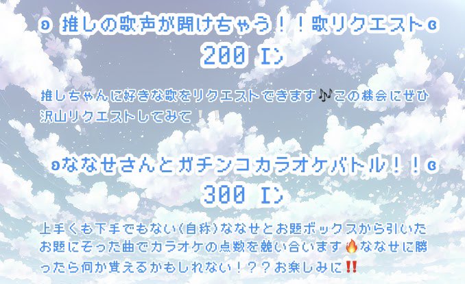 あいす@ice_ps_cafe·48分めたいきたい🥹🥹🥹🥹🥹🥹🥹引用ツイートさけやくざななせ❕❕5月27日お誕生日イベする‼️@nanasejpnzN·5時間º·˚°˙˚ʚɞお誕生日会お楽しみ企画˚˙ º·˚° お待たせしました...❕❕なんと27日限定でカラオケを置いて歌リクが出来るようにしちゃいます❕❕❕ みんな推しの歌声聞きたいよな〜!??聞きに来いよー‼️‼️‼️(イキリ陰キャ) 質問あったらDM来てね❕❕