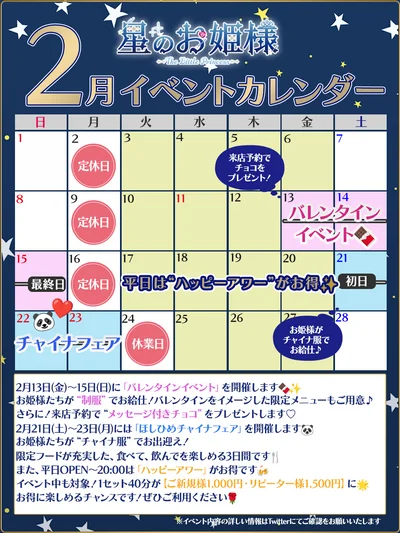 💙星のお姫様 2月のイベントスケジュール💙