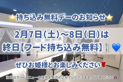 2/7(土)~8(日)の2日間は『フード持ち込み無料デー』です🍴💙