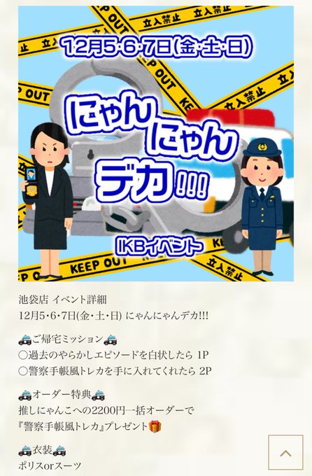 ちょこ@みけねこカフェ池袋@chocomikecat·10時間ポリスで1枚も自撮りしてないんですが、こんな感じでした👮🏻 3日連続で🦵🏻は網だったよ引用おんぷ@みけねこカフェ池袋@onpumikecat·12月6日また!!!!!り!!!!! 逮捕してしまいますよーーーーー💢💢💢💢💢💢💢💢 🎶 ぴあのさん@pianomikecat ちょこさん@chocomikecat なぎさちゃん@nagisamikecat #みけねこカフェ #コンカフェ #池袋 #池袋コンカフェ8185