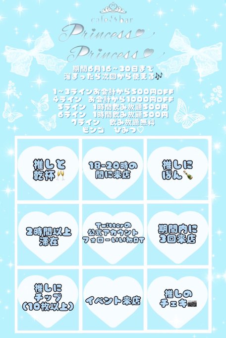 檸檬@curelmn·59分いてます!引用ツイートcafe&bar Princess♡Princess【大阪コンカフェ】@princess_osaka9·3時間本日ドリンク100円Day❗️ 本日のプリンセス しおん@Con_sansan_ みる@miru_____3ru 16日〜30日ビンゴイベント開催中 #大阪コンカフェ #ミナミコンカフェ #日本橋コンカフェ #オタロード #大阪コンカフェ求人 #ミナミコンカフェ求人 #自撮り界隈 #いいねした人全員フォロー #メイド #メイドカフェ3