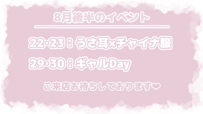 固定アニソンバーギルド 沖縄那覇店 コンカフェ最大手@guild_naha·🩵8月後半出勤表🌼 ┈┈┈┈┈┈┈┈┈┈ イベント情報 8月22・23日 ‣‣ うさ耳チャイナ🐼 8月29・30日 ‣‣ ギャルデー👱🏻♀️🤙🏻 ┈┈┈┈┈┈┈┈┈┈ ※一部、短縮営業になります。ご了承くださいm(_ _)m #沖縄 #アニソンバー #コンカフェ嬢 #久茂地 #松山 #コンカフェ291,497