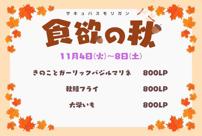 サキュバスシーシャBAR MORRIGAN大阪難波店さんがリポスト山田Gカシス💚生誕ありがとうございました。@cassis_morrigan·11月予定遅なりました~!! ⚠️10日は店休日の為ご注意ください⚠️ 4日~8日は食欲の秋ということで色々美味しそうな物が…🍁🍂 是非食すべし✨ #カシスずんどこわっしょい0:0613362