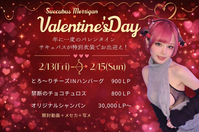 ぴんく🩷サキュバスシーシャ@pink__morrigan·バレンタインイベント💌💘 15日までやってます✨ 手作りチョコは早いもの順で🍫 23:30まで降臨!!4123744