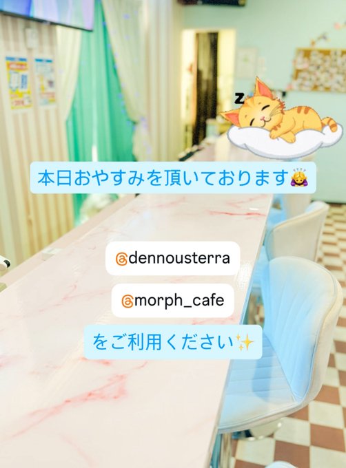 三島⛩コンセプトカフェ&バー 『Re:フレイン』@Refrain_mishima·本日おやすみです🙏 @dennousterra @morphCafe をご利用くださいませ☆。.:*・゜3344