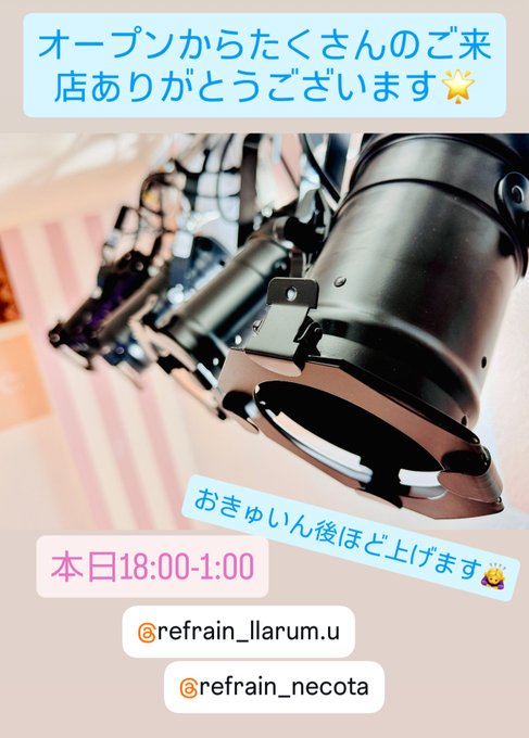 三島⛩コンセプトカフェ&バー 『Re:フレイン』@Refrain_mishima·オープンからありがとうございます✨ 後ほどおきゅいんのせます🙇♀️ 10/16(木) 18:00-2:00 @refrain_llarumu @refrain_necota2236
