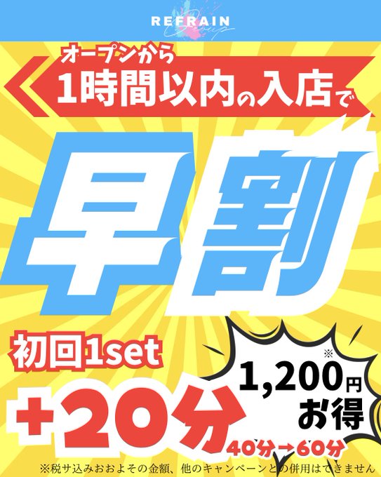 三島⛩コンセプトカフェ&バー 『Re:フレイン』@Refrain_mishima·🌟平日限定早割り・はしご割適用です👼🏻 (最初の1時間以内の来店で1set 40分→60分っ!!)4260