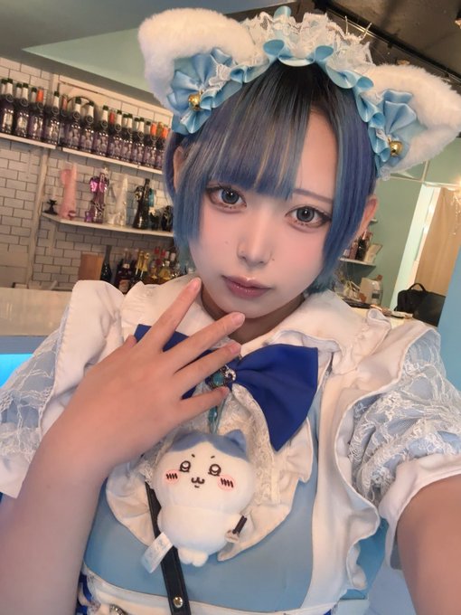 にゃんたー✖️にゃんたー🐈⬛🩵さんがリポストふりる@furifuriru_·おきゅいん(ᐢᴖ ·̫ ᴖᐢ) 羊さんヘアですよ🐑💙 #コンカフェ #秋葉原 #コンカフェ嬢213278