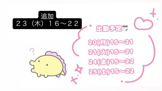 ゆあてゃ@ram_yua·来週の出勤は 22日18時30分~22時30分 24日18時30分~22時30分 土日は予約出勤のみなのでリプください🤲🏻🫧 12時~15時or21時~23時で出勤可能です⋆⸜♡⸝⋆ お待ちしてます🌟⋆꙳1110208